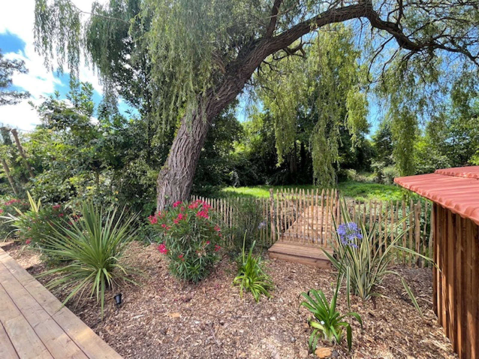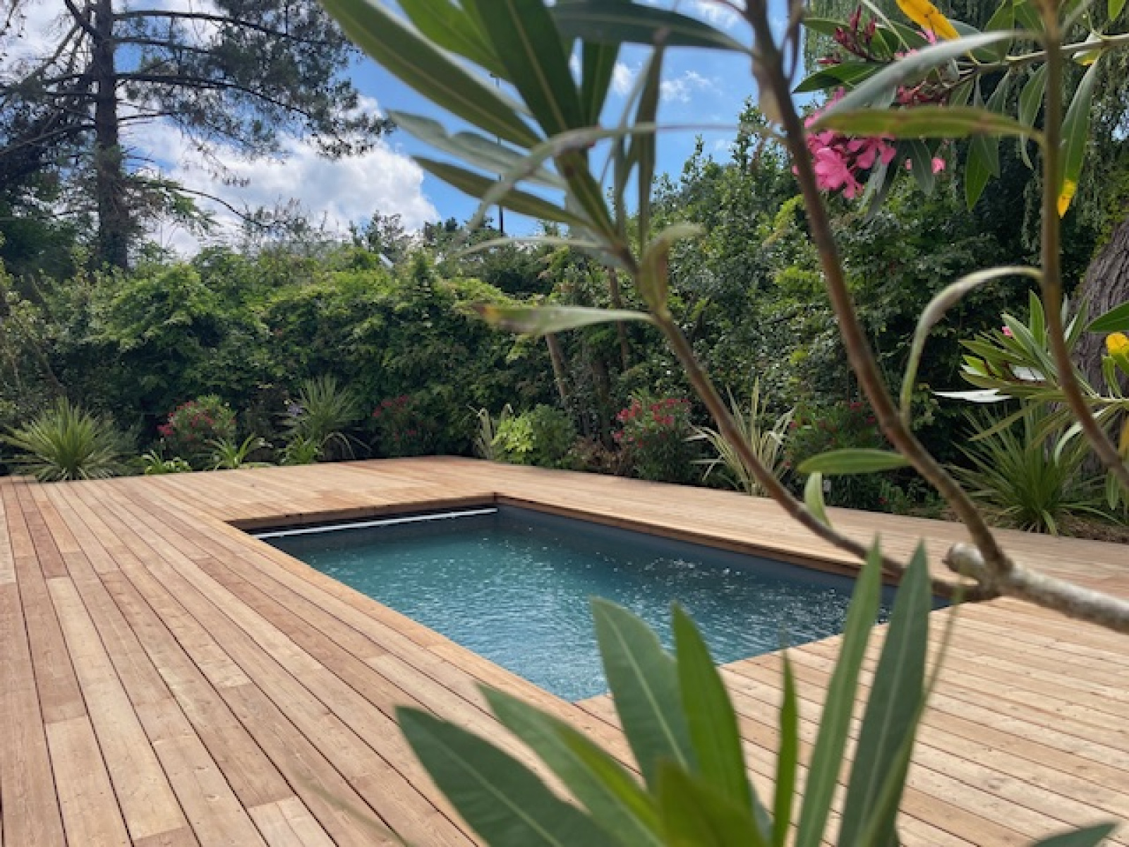 A l'extérieur, deux vastes terrasses en bois ainsi qu'une piscine 8x4m donnent sur un jardin aux mille senteurs. Une allée voiturière permet le stationnement de trois véhicules. Les plages du Pyla-sur-mer sont à proximité.