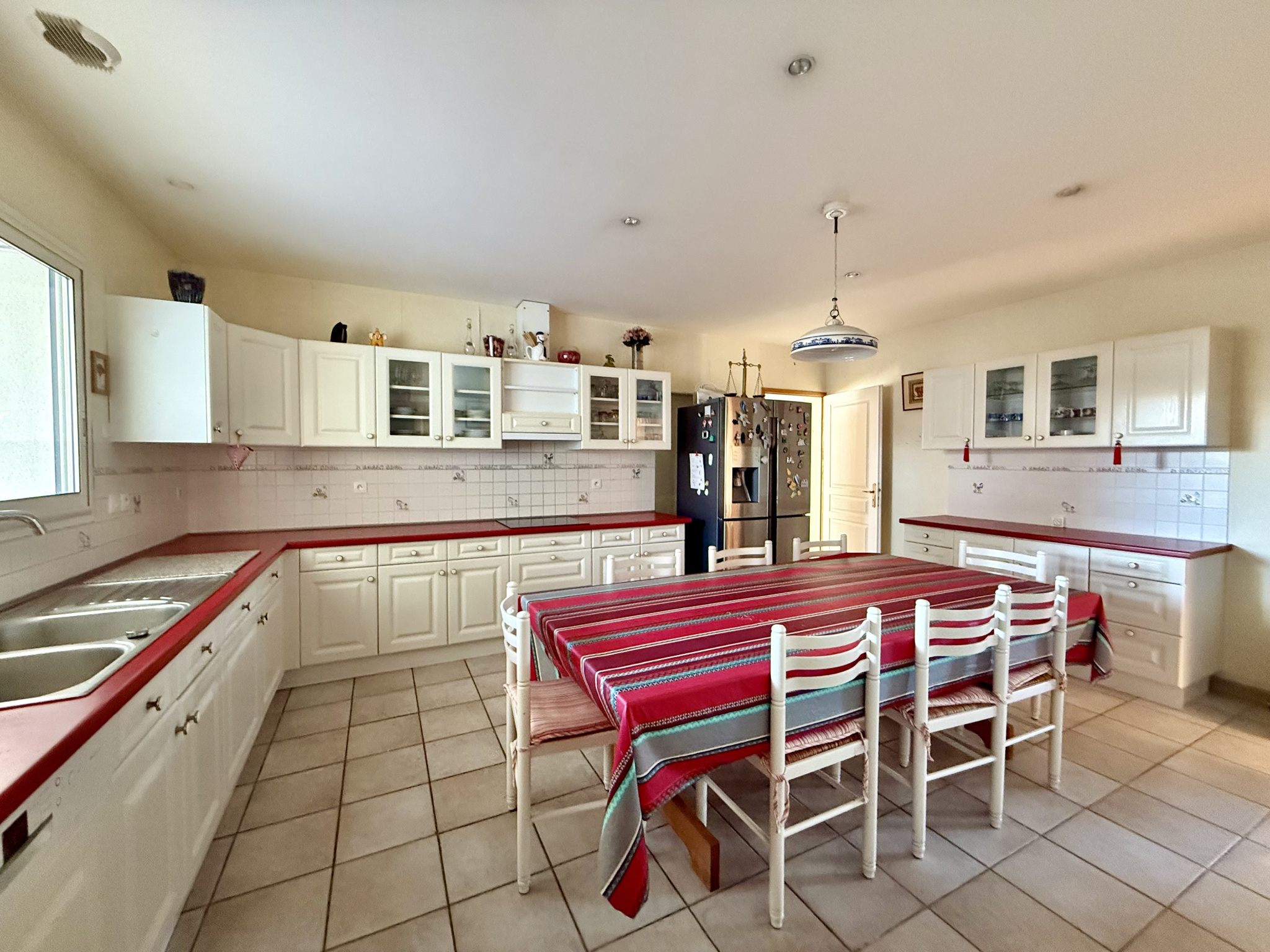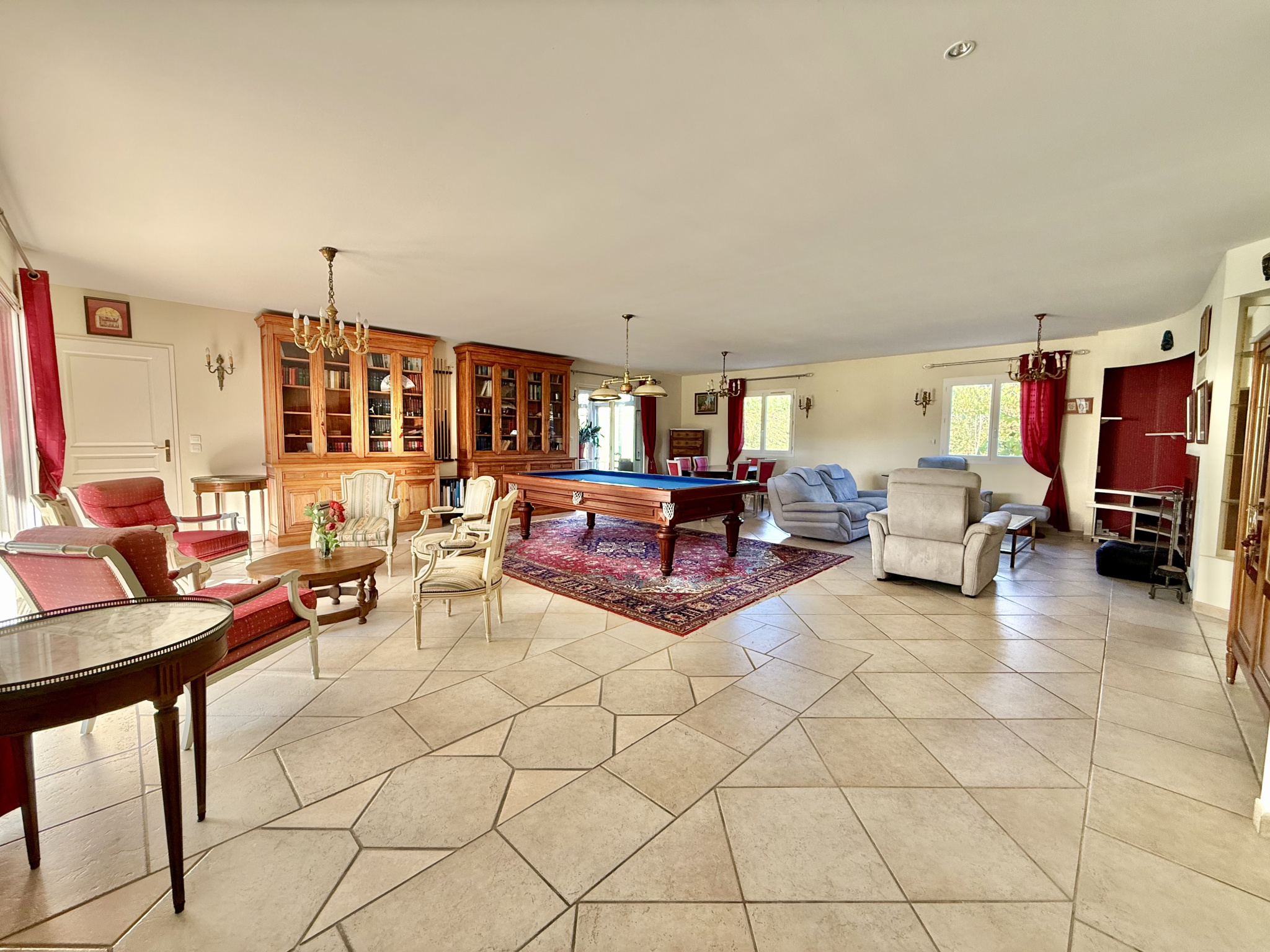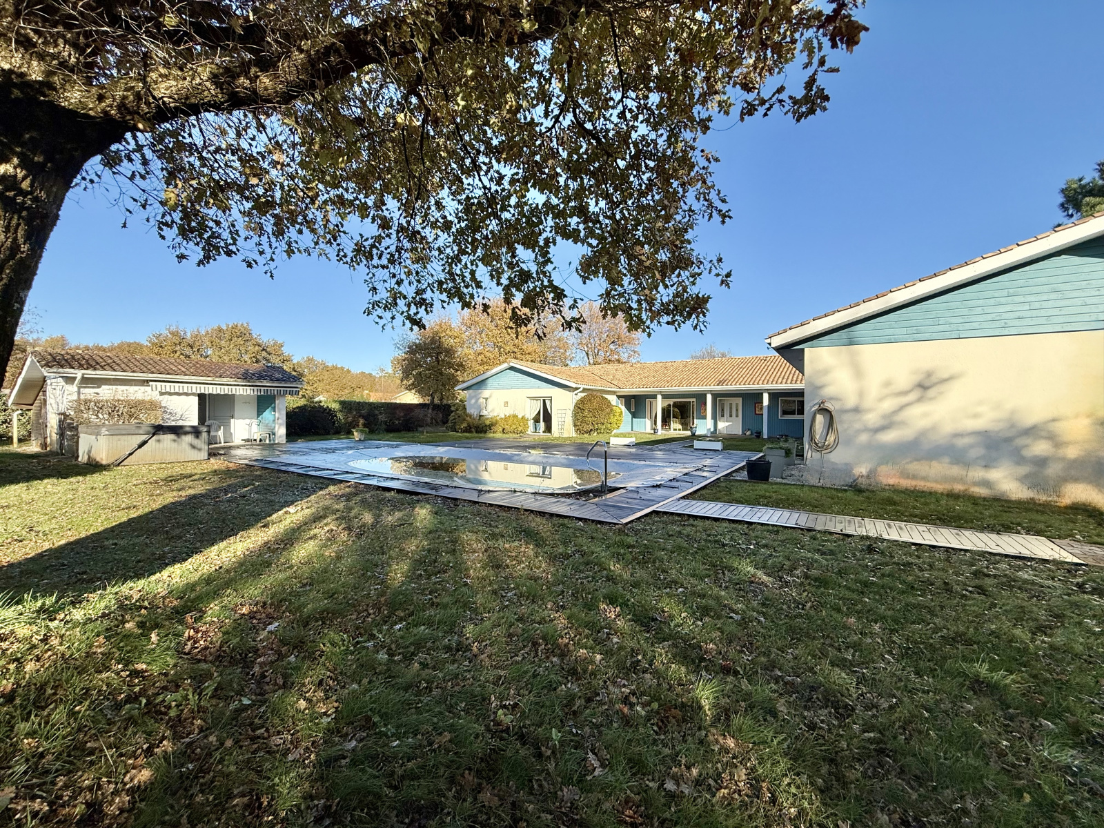 Gujan-Mestras (33470)Maison contemporaine de plain-pied, d'une surface habitable de 297 m² comprenant une réception avec une cheminée de 70 m² avec une véranda attenante et une cuisine équipée avec son cellier.