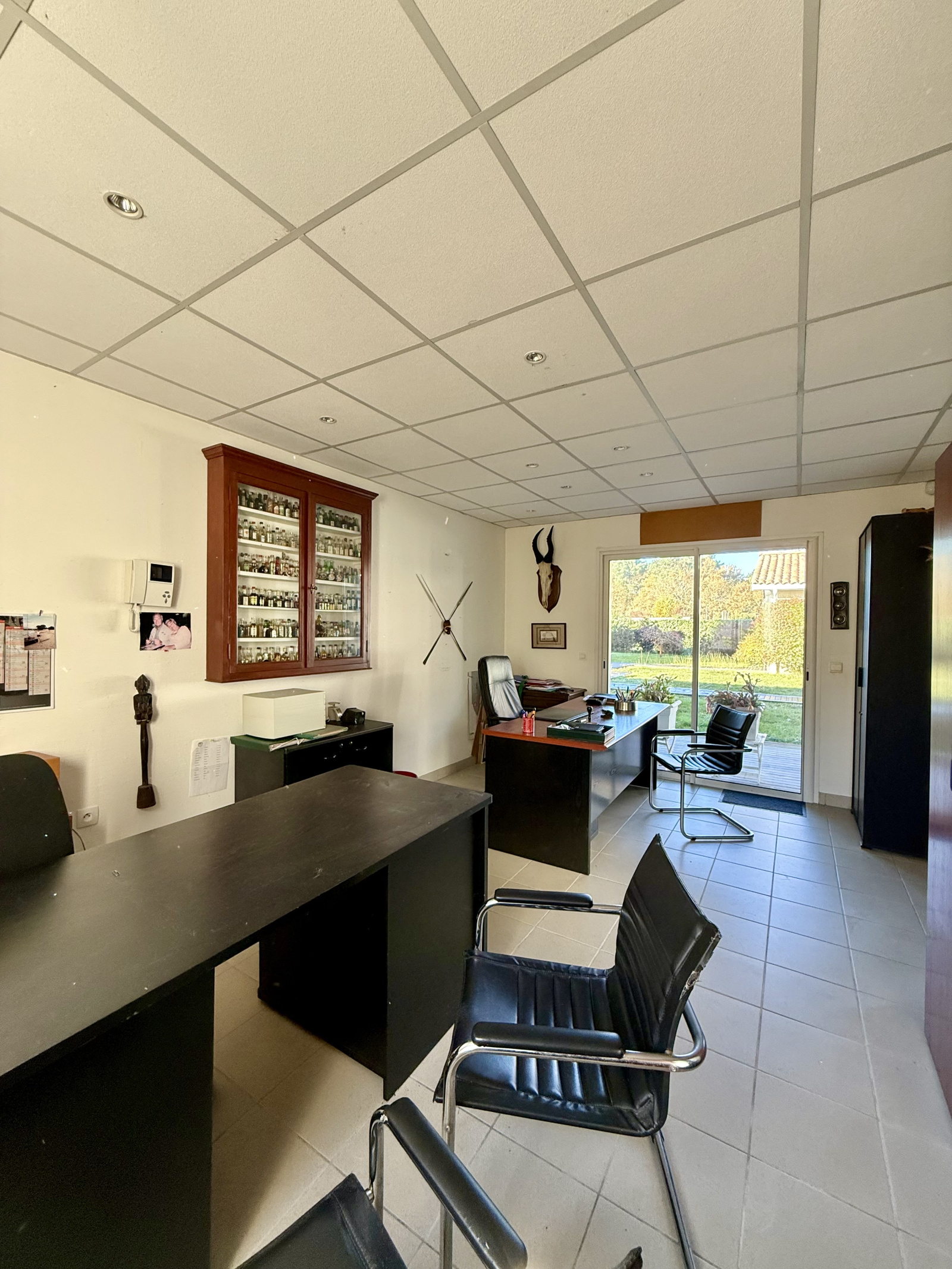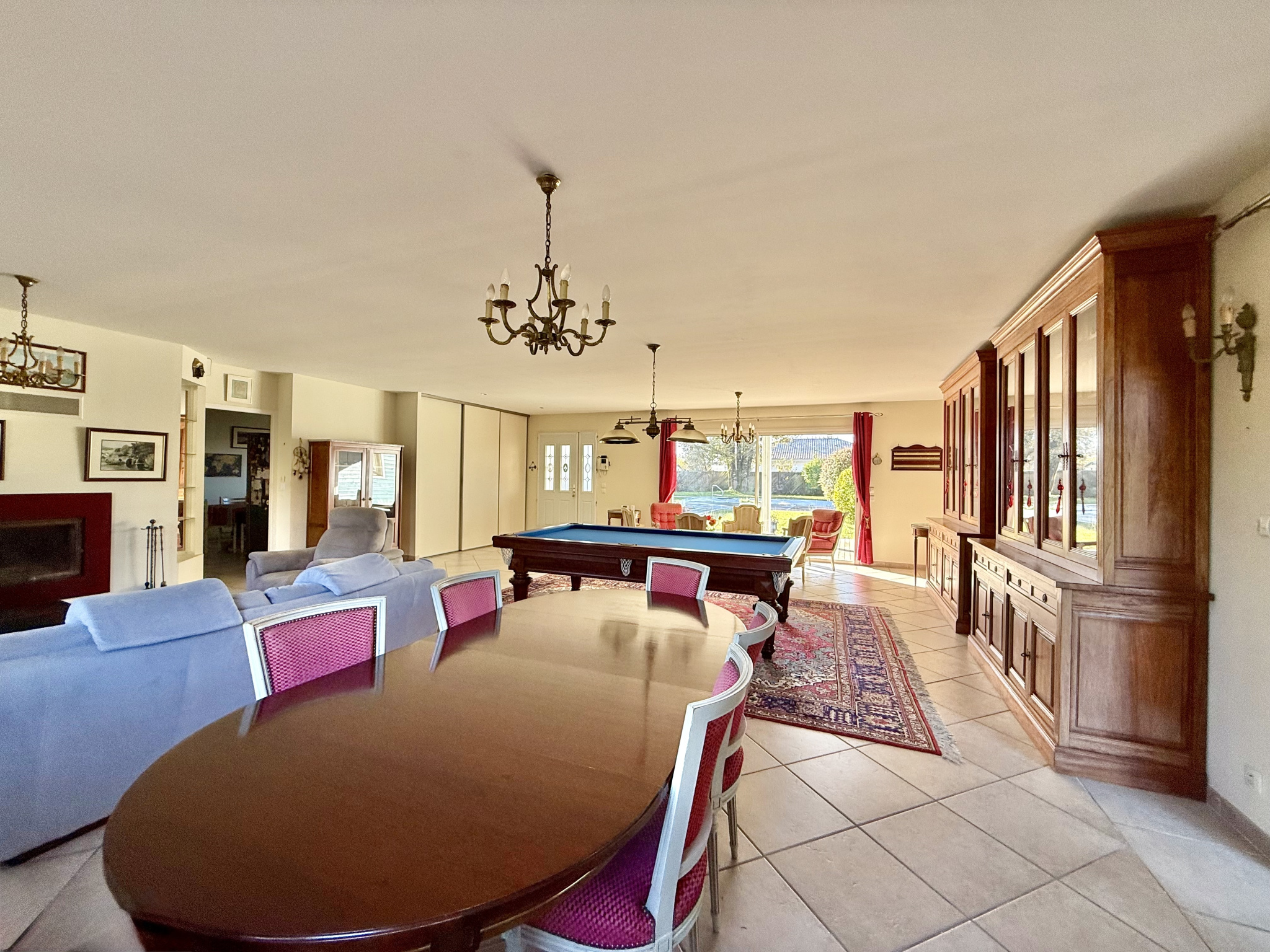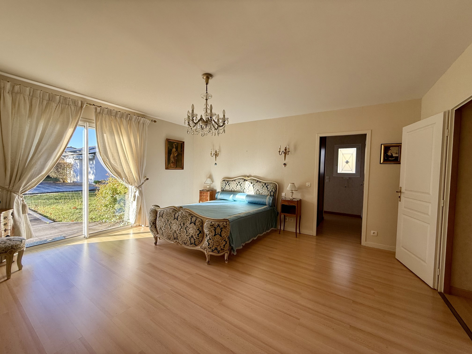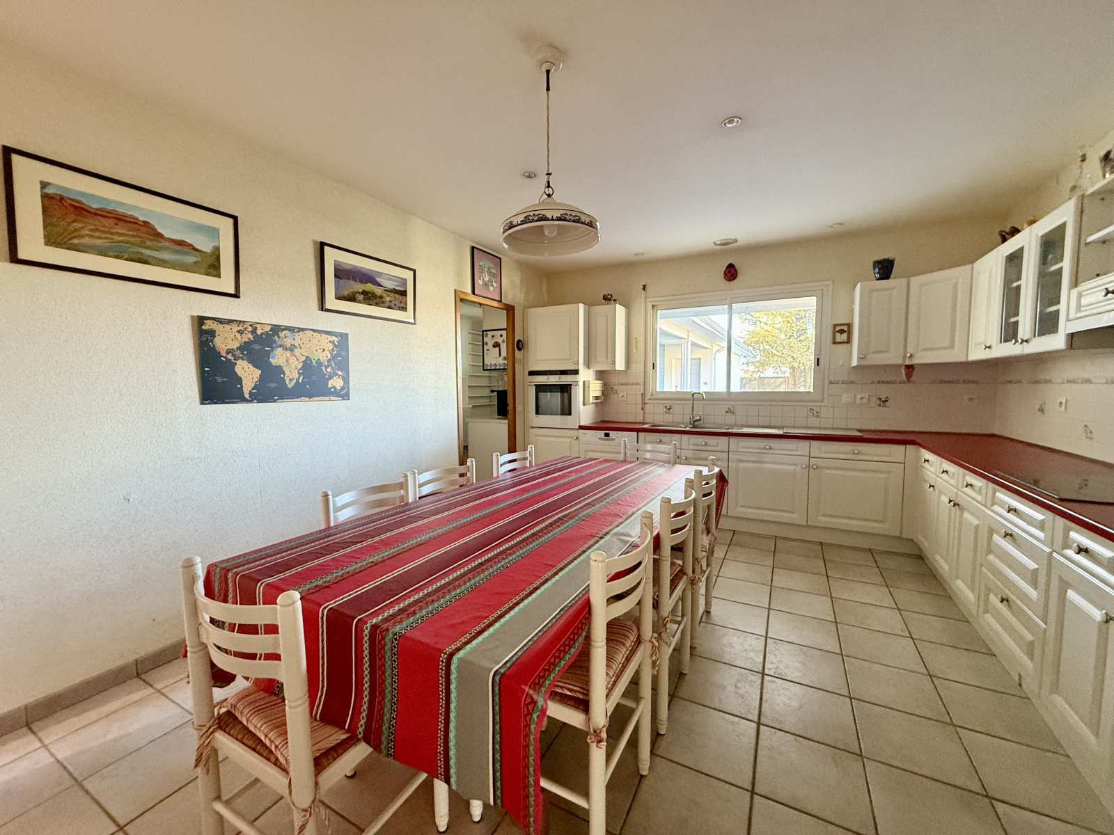 Gujan-Mestras (33470)Maison contemporaine de plain-pied, d'une surface habitable de 297 m² comprenant une réception avec une cheminée de 70 m² avec une véranda attenante et une cuisine équipée avec son cellier.